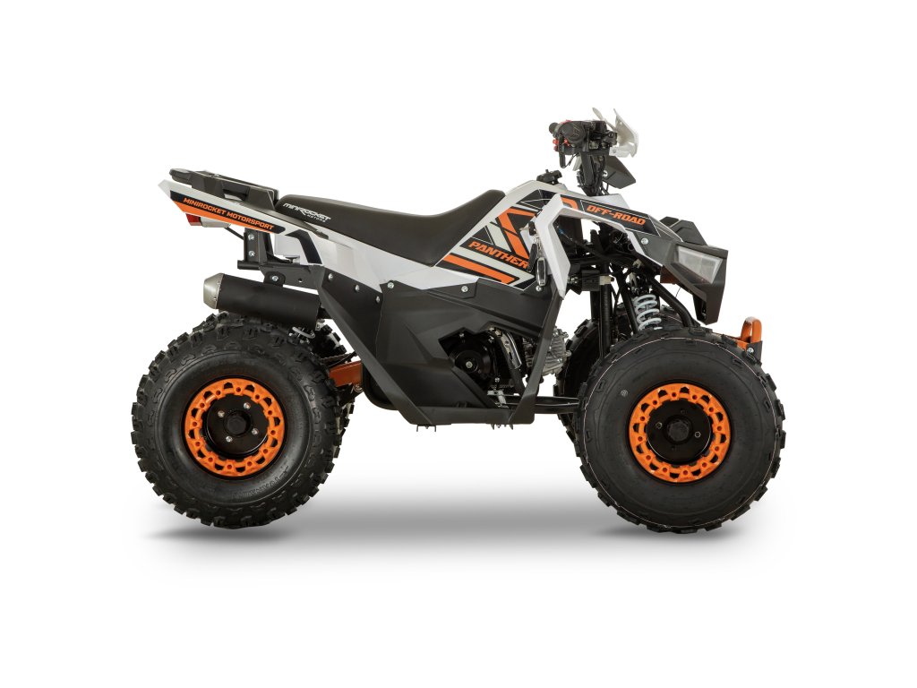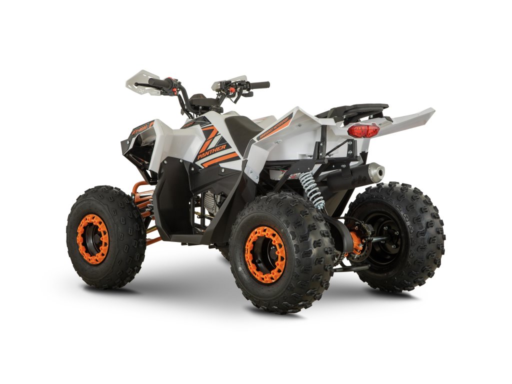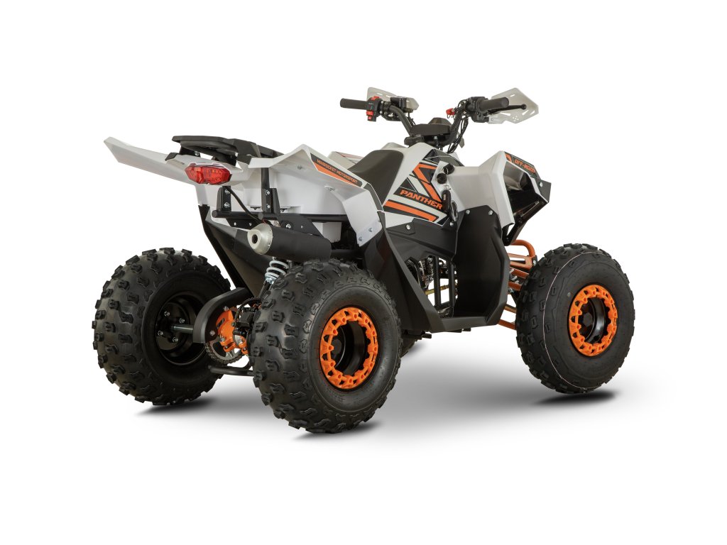 AFF 125cc Panther je spoľahlivá a výkonná detská štvorkolka 125cc, ideálna pre deti aj menších dospelých. Vďaka automatickej prevodovke s možnosťou jazdy vpred aj vzad je ovládanie jednoduché a bezpečné. Moderný dizajn, bohatá výbava a robustná konštrukcia robia z tohto modelu výbornú voľbu pre rekreačnú jazdu v teréne.