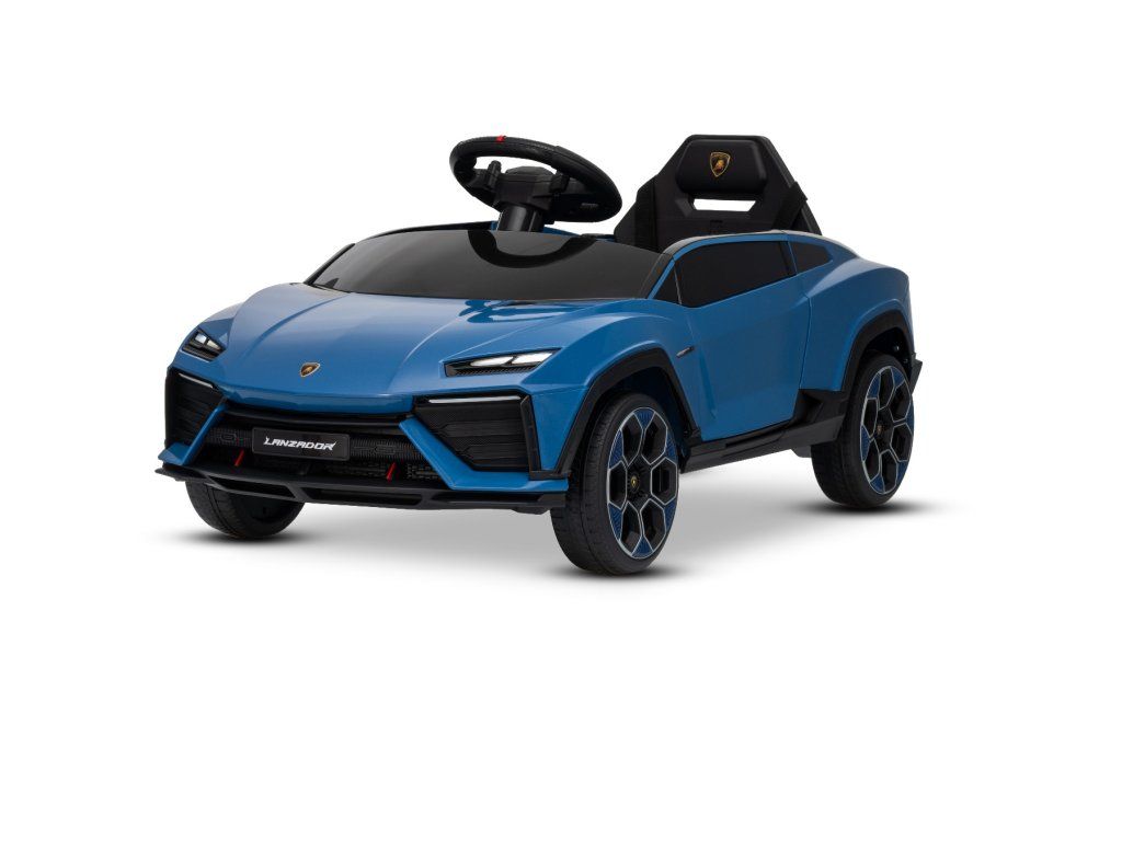 Elektrické autíčko Lamborghini Lanzador 12V s pohonom zadných kolies a licenciou (Jednomiestne), modré, Lítiová batéria, LED svetlá, široké sedadlo, 2,4 GHz diaľkový ovládač, MP3 prehrávač so vstupom USB/AUX a Bluetooth pripojením