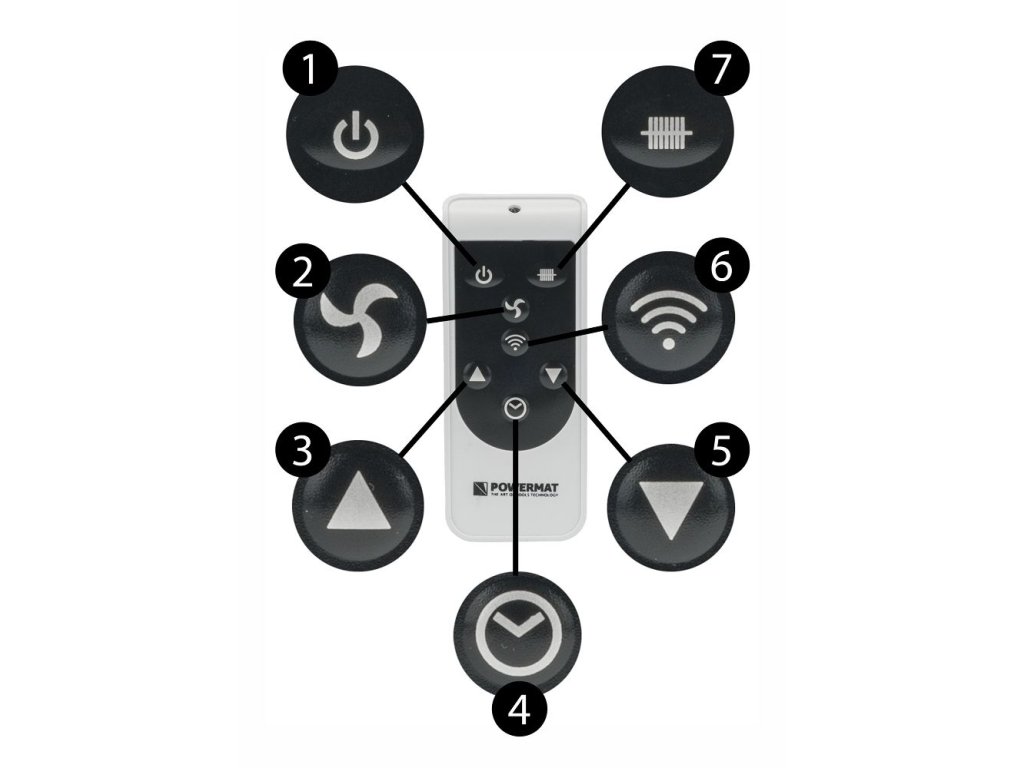 Jednoduché prepínanie výkonu ohrievača zabezpečuje jedno tlačidlo na paneli alebo diaľkovom ovládači.