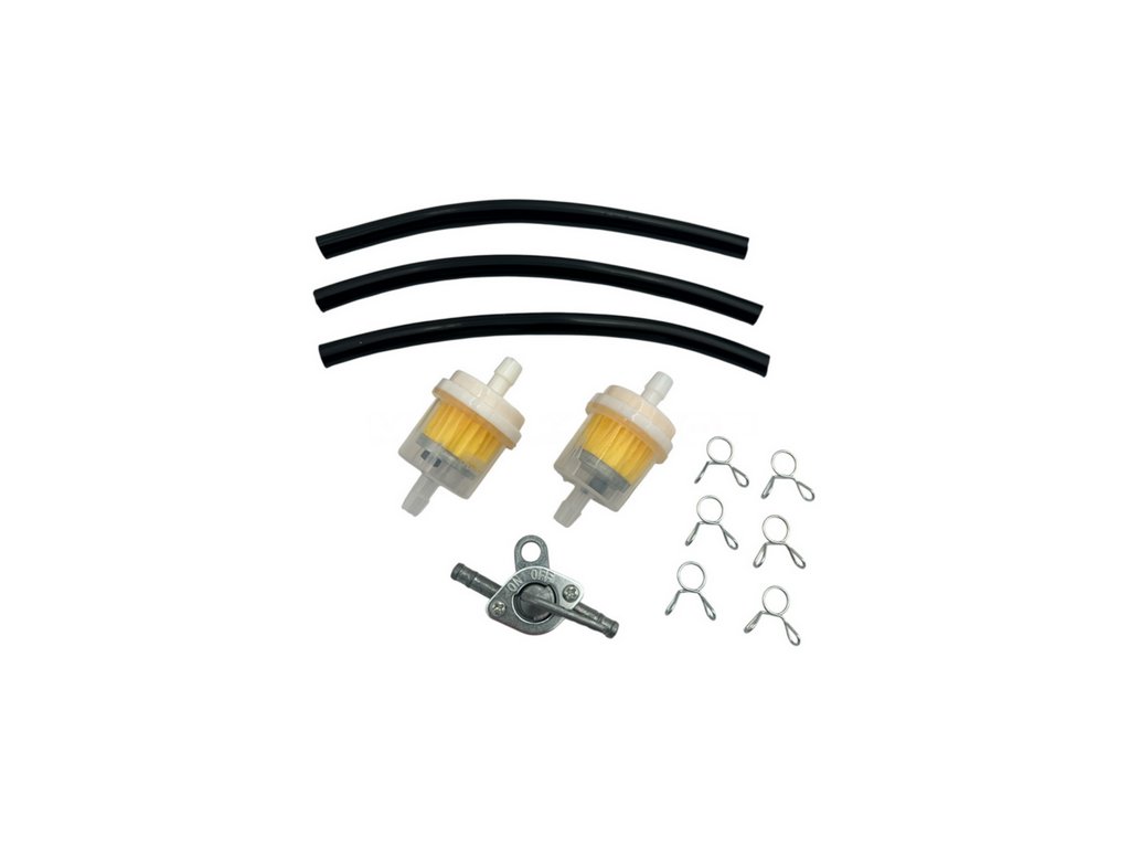 Praktická servisná sada palivového systému obsahujúca palivové filtre, silikónové hadičky a palivový kohútik. Sada je vhodná pre štvorkolky (ATV), pitbike, dirtbike, minibike, skútre a ďalšie malé benzínové motory.