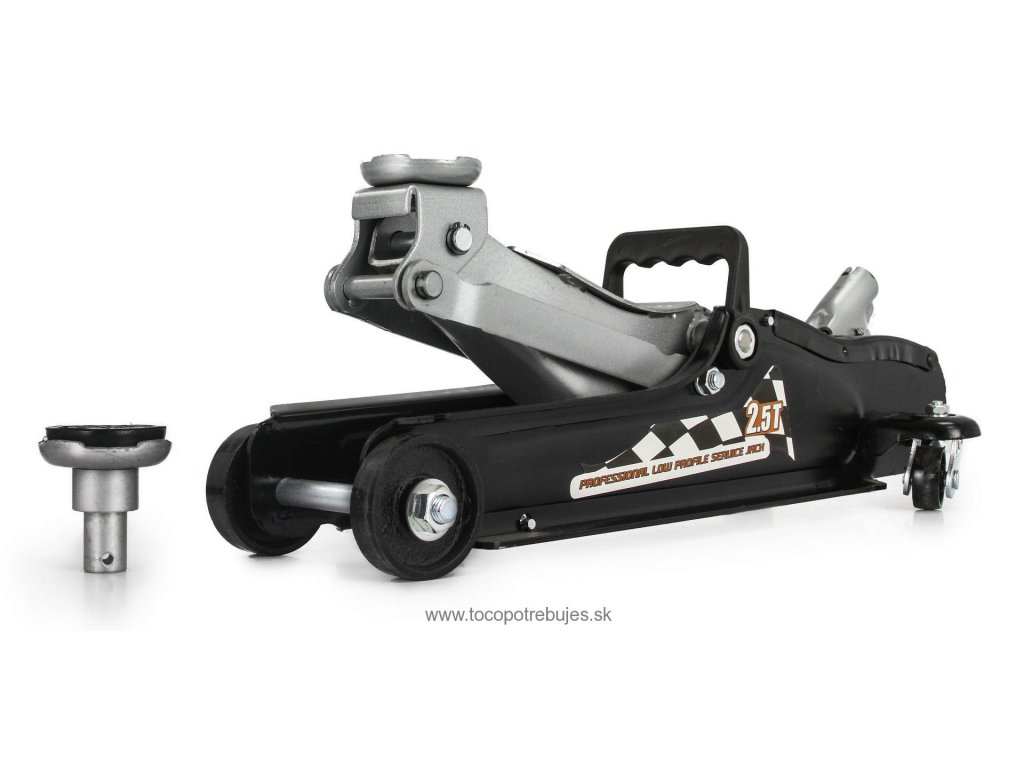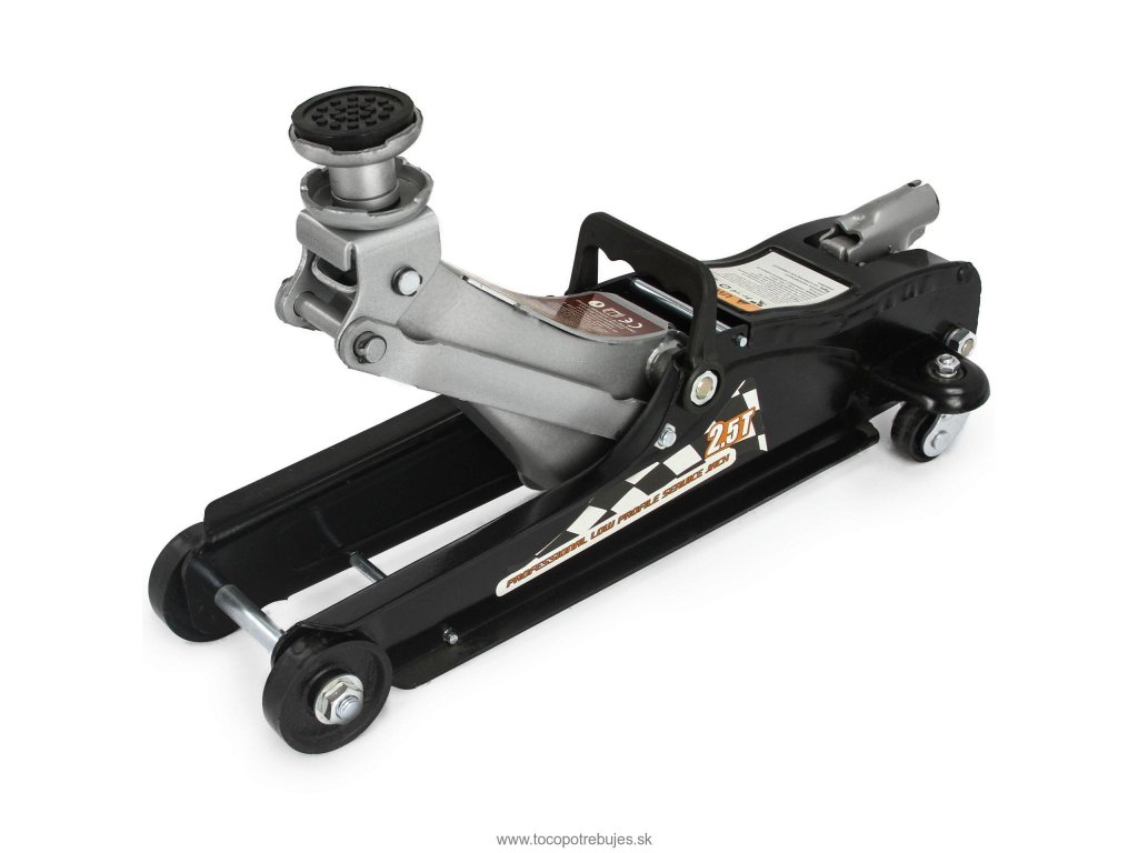 Pojazdný hydraulický zdvihák 2,5T umožňuje vďaka nízkemu profilu zdvíhanie vozidiel s malou svetlou výškou - športové vozidlá, vozidlá po tuningu a inak upravované vozidlá. Robustná celokovová konštrukcia zaručuje bezpečnosť a stabilitu pri práci. Odolné kovové kolieska uľahčujú manipuláciu a pohyb zdviháku v priestore pod vozidlom. Zdvihák je vybavený manipulačným a bezpečnostným ventilom. Kvalitná konštrukcia predurčuje zdvihák pre intenzívne využitie v autodielni alebo pneuservise.