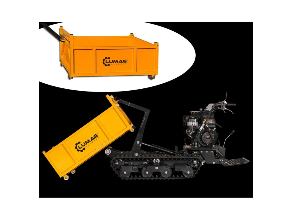 - Malý kontajnerový pásový sklápač je konštruovaný na jednoduché použitie napríklad na prevoz nákladov po náročnom teréne, alebo na odpratanie snehu.