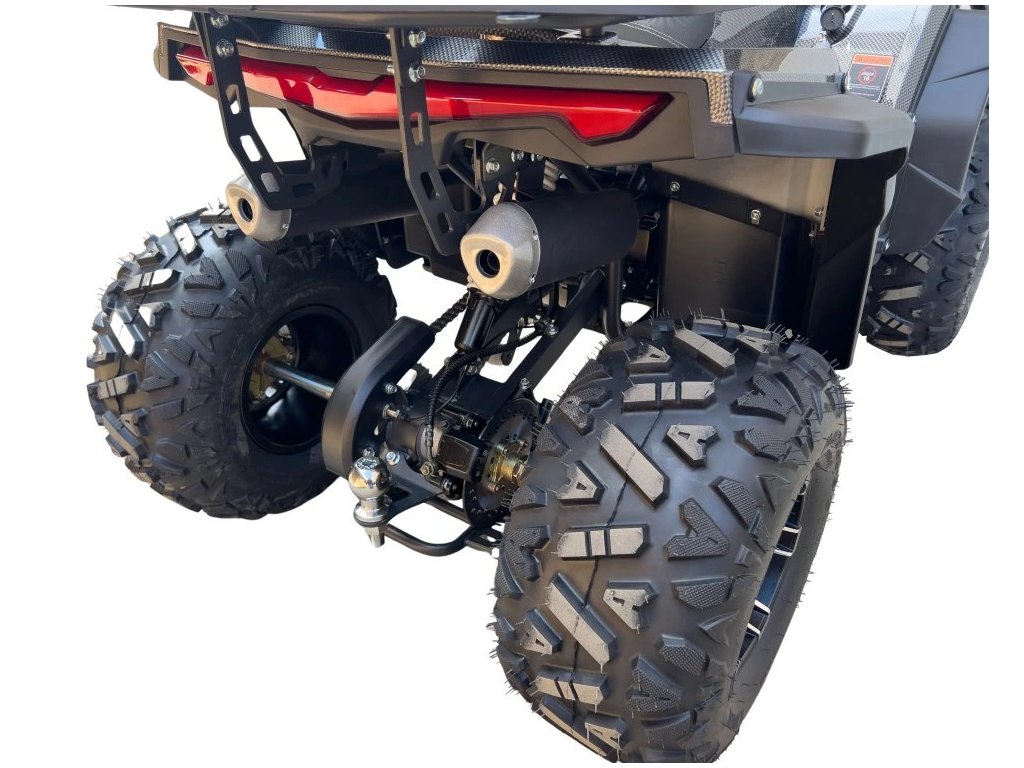 Štvorkolka je vybavená 8" kolesami, čo jej umožňuje plynulý pohyb aj v náročnejšom teréne. Maximálna odporúčaná hmotnosť jazdca je 80 kg.