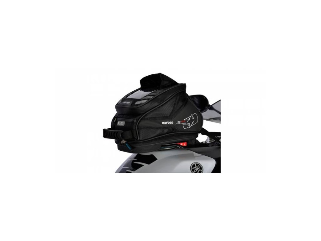 Tankbag na motocykl Q4R QR, OXFORD (černý, s rychloupínacím systémem na víčka nádrže, objem 4 l)